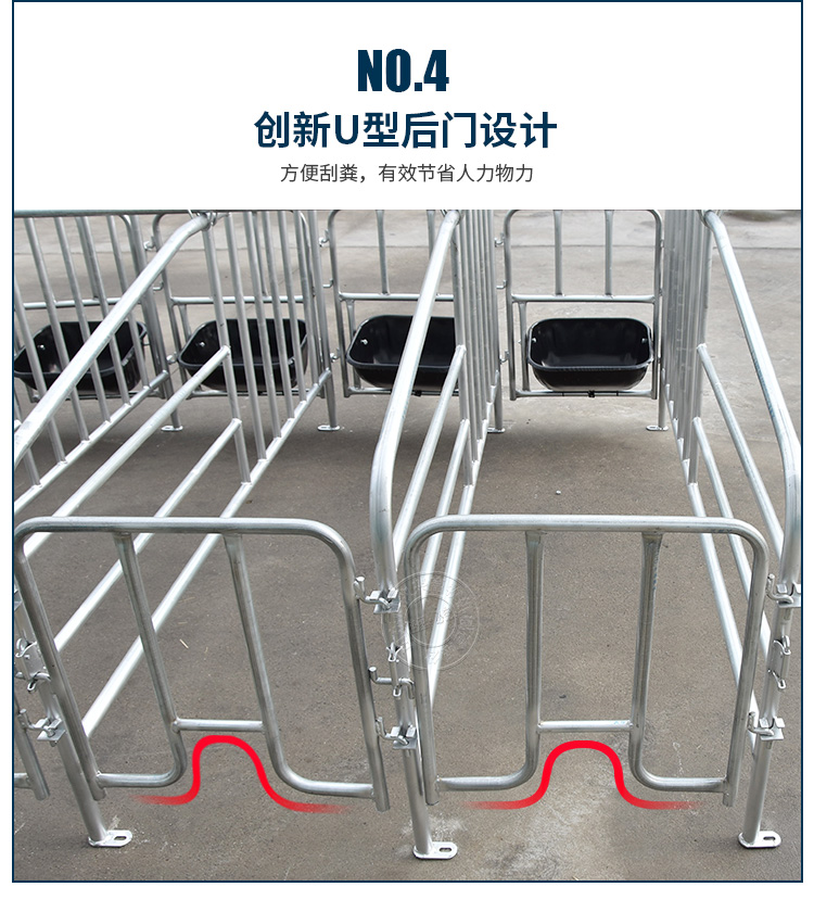 产品简介:非标2.0镀锌管体,防腐蚀不易生锈,且双侧都是7根立管加固焊接,超长使用寿命;新式U型后门搭配加厚门扣碰锁,表面镀锌耐腐蚀,方便防疫、清理粪便;